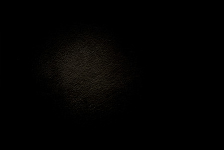 A textured dark surface is dramatically lit from above by a spotlight, with a tiny bright speck visible in the upper right.