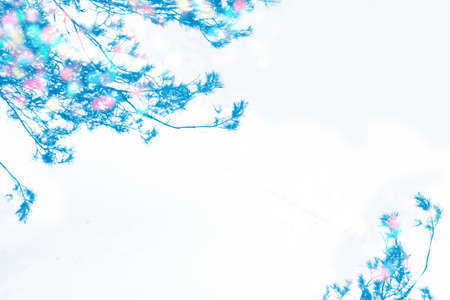 Winter branches with frost in soft focus, tranquil nature scene. Serenity and cold weather concept