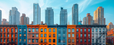 A breathtaking scene of mammoth skyscrapers harmoniously juxtaposed, showcasing architectural excellence and urban grandeur.