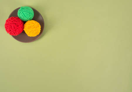 Plastic balls on the blue Epidemic, social isolation, coronavirus COVID-19, holiday, funny drop concept. Horizontal
