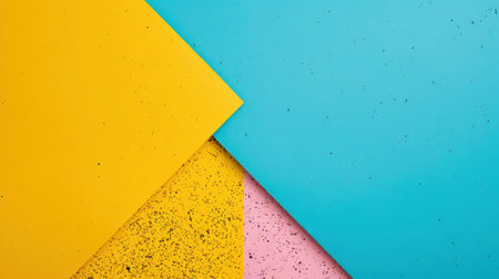construction paper collage background. abstract geometric layers. yellow blue and pink color. empty space concept.