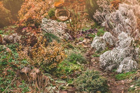 Flowers in autumn garden. Autumn garden with fall flowers. Flowerbed in full autumn bloom.