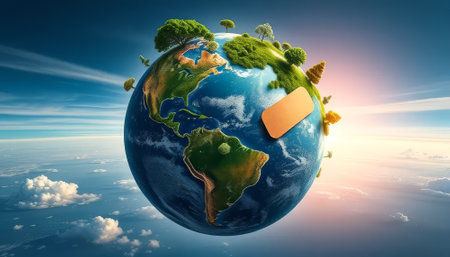 Banner dedicated to Earth Day and environmental protection with a picture of the planet. Futuristic volumetric design. With Generative AI technology.