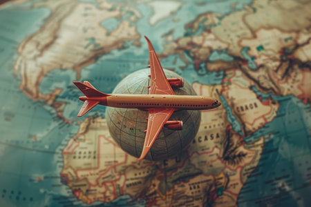 Toy Airplane Flying Over a Globe Representing Global Travel, International Transport, and World Destinations