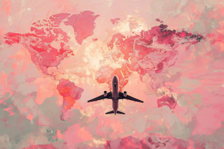 a pink world map with an airplane on it, in the style of pop inspo, soft pink and pink.