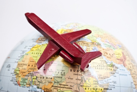 globe with red plane in one