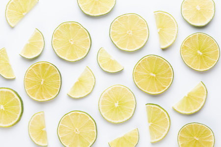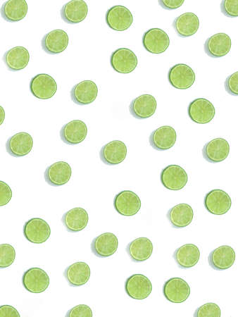 Fruit pattern of lime slices isolated on white background. Top view. Flat lay