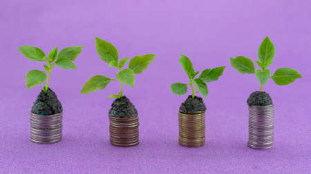 The concept of financial development and business growth with trees that grow on coins.