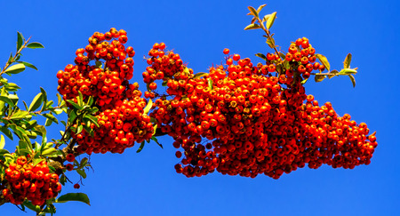 Fruits of a scarlet firethorn (Pyracantha coccinea)