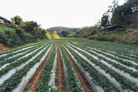 Outdoor strawberry farm in a rural village,strawberry planting