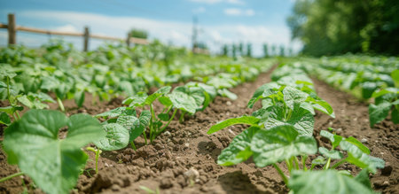 Vibrant organic farm. thriving crops, soil health, chemical-free and sustainable agriculture