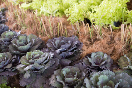 lettuce salad growing in vegetable garden in farm