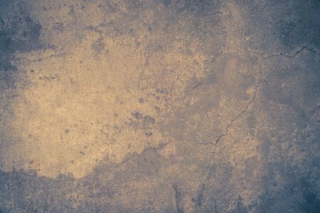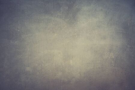 Old gray surface. Art rough stylized texture banner with space for text. Blue and yellow background texture decorative plaster. Grungy concrete wall with multi-colored lighting and blurred edges.