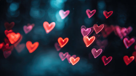 A captivating display of floating hearts with a soft bokeh effect in the background, evoking feelings of love and joy in a whimsical and dreamlike atmosphere.