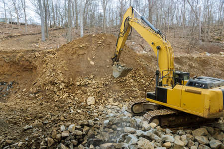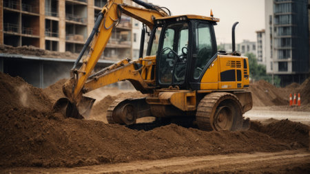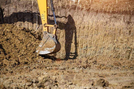 Heavy machinery excavator digging soil at construction site