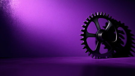 A striking image featuring a black gear set against a vibrant purple background, showcasing unique light and shadow effects to enhance industrial and creative themes.