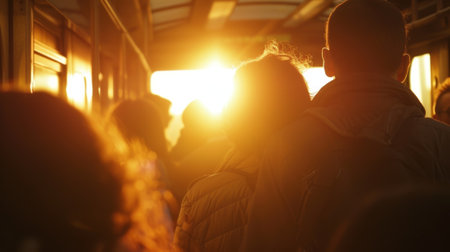 A crowd of people is silhouetted against a bright, undefined background. The image presents high contrast with dark figures and a stark white space. The composition emphasizes shadows and form, suggesting potential for use in a variety of visual concepts and artistic projects. Suitable for editorial and commercial applications.