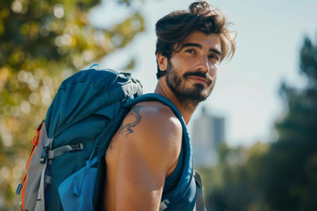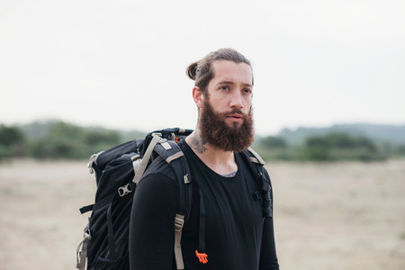 Hiker with beard outdoors