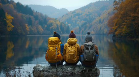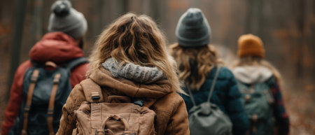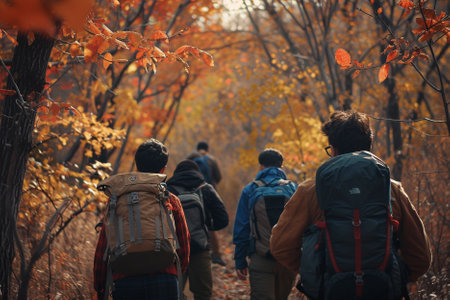 Friends adventuring in an autumn forest a scenic hiking experience in nature