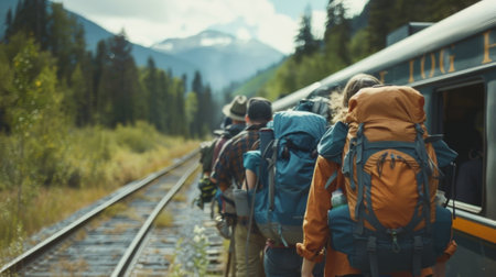 A group of hikers boards the train looking forward to exploring a remote ecofriendly trail