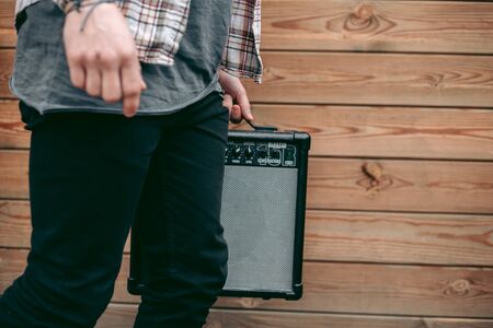 A close-up of a modular synthesizer. Electronic music and professional music equipment concept.