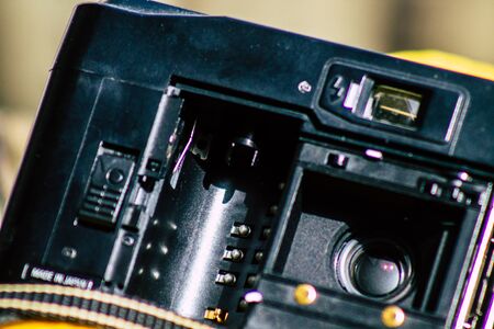 Tel Aviv Israel March 28, 2020 Closeup of an old camera placed on a wooden table