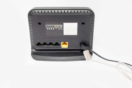 Electronic collection - black wireless internet network wi-fi router isolated on white background