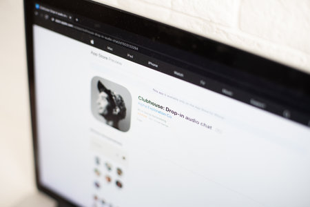 Kyiv, Ukraine - FEBRUARY 22, 2021: app icon of the app Clubhouse on phone screen top view, Illustrative Editorial