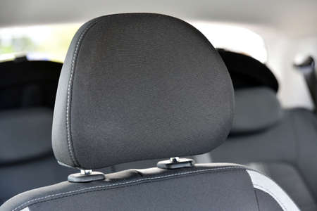 Close-up of rear seat headrest on light blurred background of passenger car interior