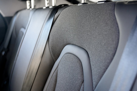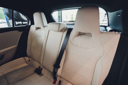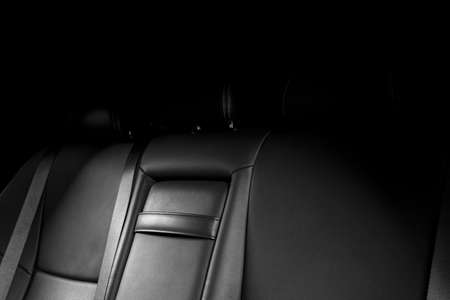 artificial leather rear seats in the car. beautiful leather car interior design. luxury leather seats in the car. Black leather seat covers in the car.