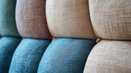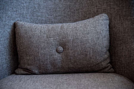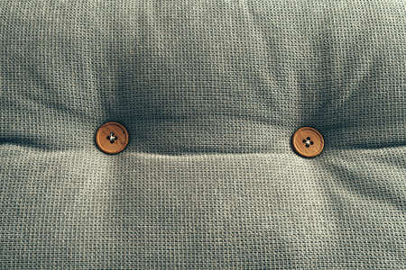 Gray couch surface background with buttons. Sofa pillow detail, close up