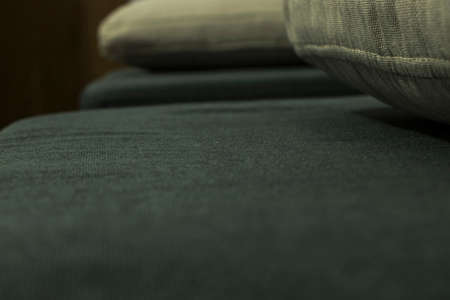 Close up gray color sofa cloth texture, upholstered furniture, top view