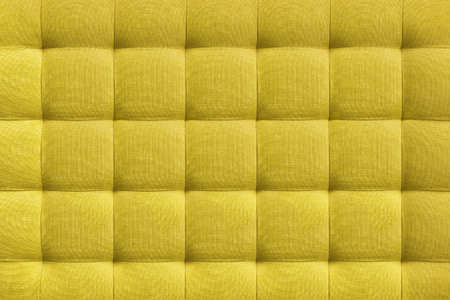 Yellow suede leather background for the wall in the room. Interior design, headboards made of furniture fabric, furniture upholstery. Classic checkered pattern for furniture, wall, headboard