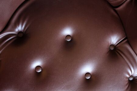 Background brown velvet capitone textile, suede, velvet with buttons, sofa backdrop. Couch seat. Close up macro photo.