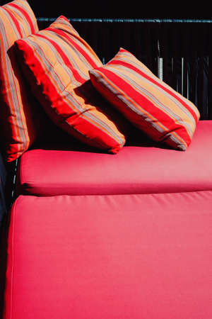 cozy stylish home corner on the sofa with two pillows. you can stay at home to relax and have a good time
