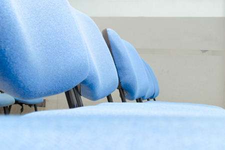 Conference room with plastic chairs detail and yellow floor. Horizontal