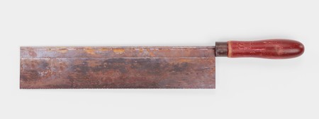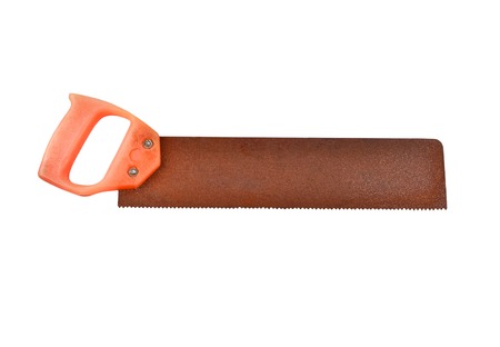 old rusty saw on white background