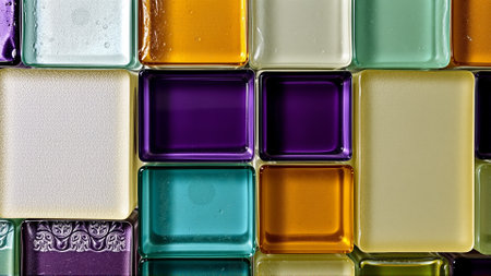 A vibrant mosaic tile pattern featuring diverse colors and textures, ideal for interior design projects, home decor, and artistic inspirations. Perfect for renovations or creative spaces.
