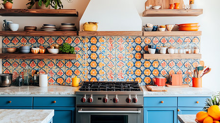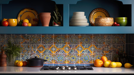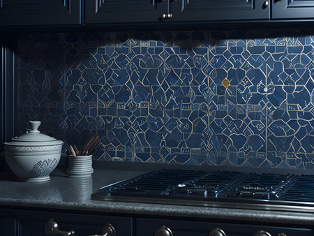 modern kitchen interior design with a beautiful pattern of moroccan-inspired mosaic backsplash.