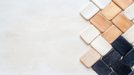 A captivating arrangement of wooden tiles featuring various tones on a light background, perfect for aesthetic home decor ideas and design inspiration.