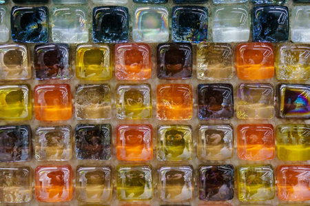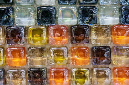 Bright multi-colored wall made of glass blocks