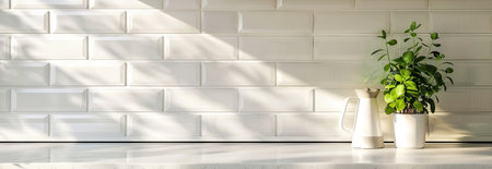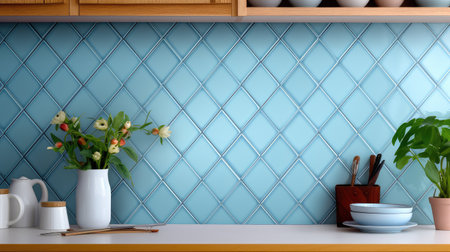 Decorative tile wall with plant in pot interior design