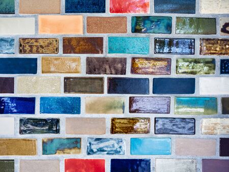 Close up of colorful ceramic tile wall. Abstract background and texture for design.