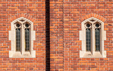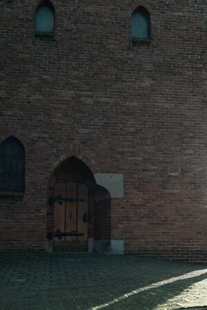 old weathered brick wall with windows in gothic style in a medieval castle
