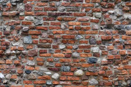 Embossed textured surface of an old wall made of facade bricks and cement