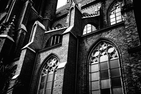 facade of a historic gothic church in Gdansk