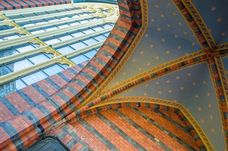 Windows with stained glass in Gothic church in Wroclaw