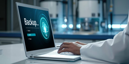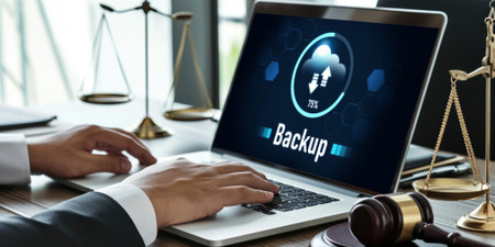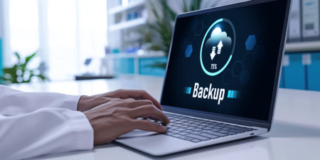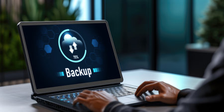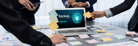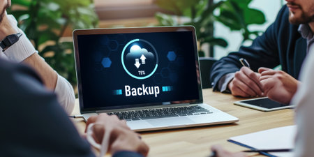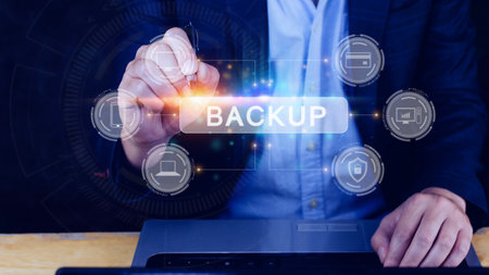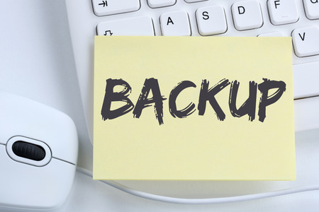 Backup save data on computer technology office keyboard