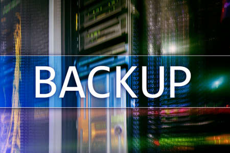 backup. wooden blocks with backup lettering on blue background with storage servers