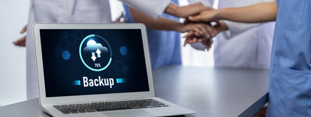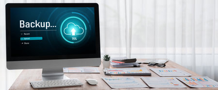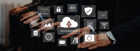 Backup Storage Data Internet Technology Business concept. Database storage cloud technology file data transfer sharing, cyber, big data information, internet banking application download upload snugly